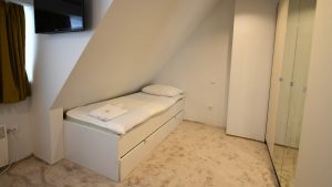 a. spavaća soba – bračni ležaj (160×200) + singl na izvlačenje koji se može formirati u dupli ležaj 160×200