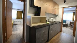 Smeštaj: Sadržaj studija/apartmana: čajna kuhinja (sudopera, ravna ploča sa dve ringle, mini-frižiderom, kuhinjski pribor), kupatilo sa tuš kabinom, barski sto, stolice, LCD TV, sef, klima uređaj, mini bar.