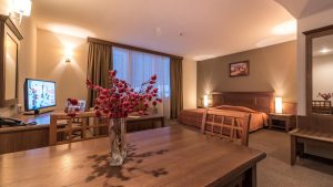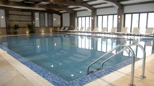 Sadržaj: Restoran, mehana, lobi bar, diskoteka, sef narecepciji, spa centar, fitnes sala, solarijum, sauna, đakuzi, zatvoreni bazen, parno kupatilo, room servis, internet, skijašnica, parking.