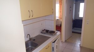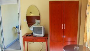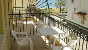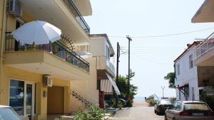 Smeštena je u neposrednoj blizini plaže. Svi studiji imaju SAT TV, WiFi i klima uredjaje čije je korišćenje uključeno u cenu. Dva studija imaju terase sa pogledom na ulicu, a dva su sa bočnim pogledom na more. Zbog svoje pozicije i kvaliteta smeštaja ovo je jedna od najtraženijih kuća u našoj ponudi. Na oko 20m od kuće je peščani uredjeni deo plaže, a na oko 120m nalazi se jedini stenovito-peščani deo plaže u Sartiju, poznatiji po restoranu “Vrahakia” (gr.prev. vrahaki-stena).
