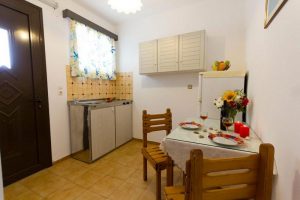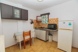 Apartman 03: apartmani se nalaze u prizemlju i na spratu. Svaki apartman se sastoji od jedne sobe sa širokim (francuskim) ležajem i dodatnim standardnim ležajem ili tri odvojena ležaja, kuhinjskog dela (veliki frižider, šporet sa dve ringle, električni bokal, posuđe za odgovarajući broj osoba), kuhinjski sto za 4 osobe, wi-fi internet, klima, sef, fen, kupatilo sa peškirima. Terasa je ispred ulaza u apartman sa garniturom za sedenje, a spratni apartmani imaju terasu sa garniturom za sedenje na koju se izlazi iz sobe.